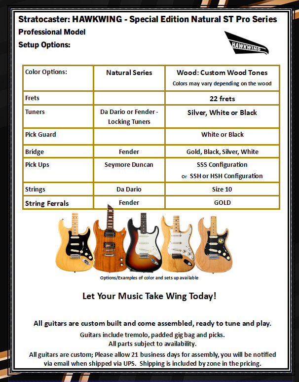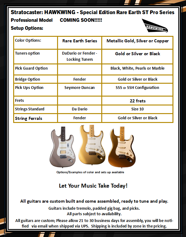Stratocaster – Hawkwing – Special Edition Rare Earth ST Pro Series Coming Soon!